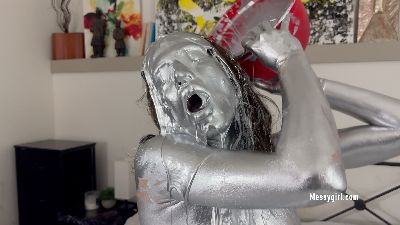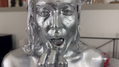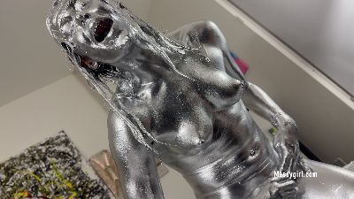 If you enjoyed Santana in gold paint, just wait until you see her in silver. Beautiful Santana once again shows off her hot body and becomes very nasty as she slowly covers herself in silver paint.
