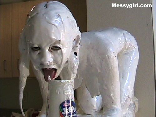 Sexy voluptuous Vicky is in the nude as she makes herself dessert. Then she pours all the ingredients over her head and body! Total coverage for Vicky!
