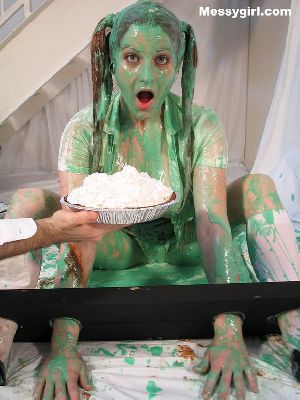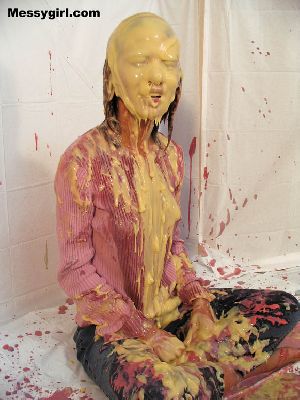 Amber is in her new sweater, skirt and boots as she gets the full messygirl treatment! She ends up nude and extremely messy head to toe!