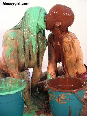 Liz is covered in chocolate and Amber is covered in peanut butter. Both girls start in the nude! They also rub it all over each other!