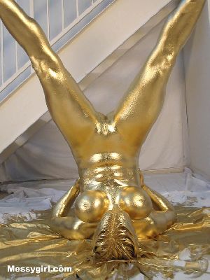 Amber is painted gold for the first time. She is also given a very sexy golden facial! The price of gold went up after this shoot :)