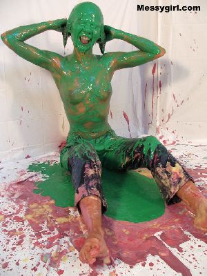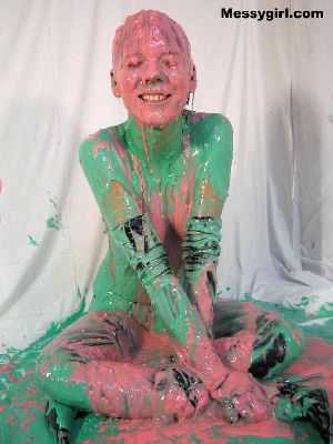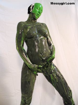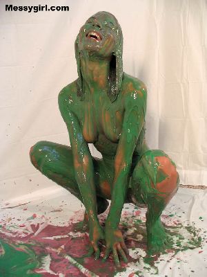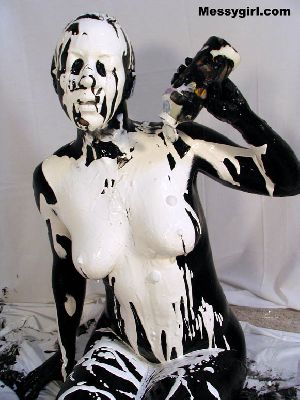 Sexy Nikki is nude as she covers herself head to toe in black paint. She then tops that off with white and lime green! Very freaky and sexy!