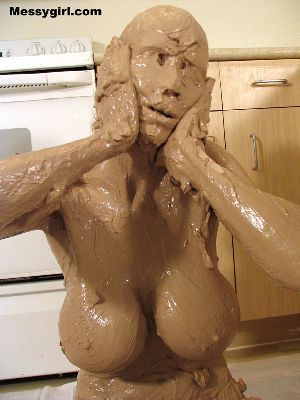 Madison is covered head to toe in clay