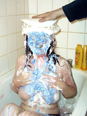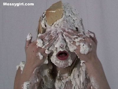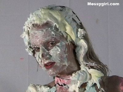 More from Liz's messy bad girl shoot. It's Liz at her messy best! She is pied, slimed, head dunking and pie sitting! Watch her as she takes the pies and slime upside down!