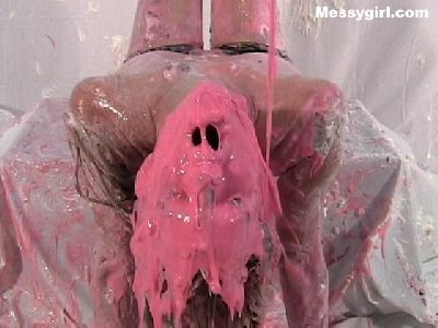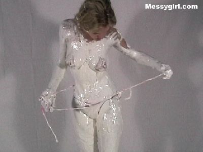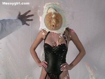 Liz is a sexy bondage girl with an attitude as she is pied and slimed in her bondage outfit. She even takes off her panties for some erotic pie sitting! She is finished off with more pies and slime with her boobs exposed!