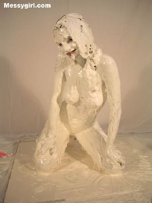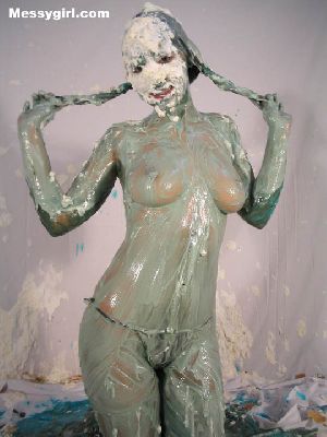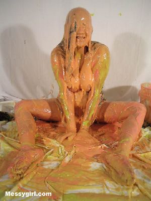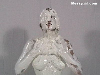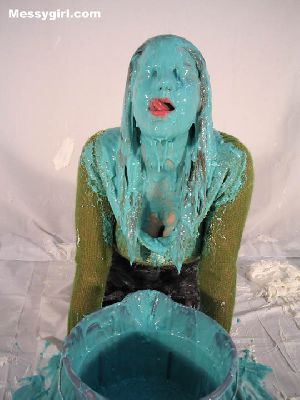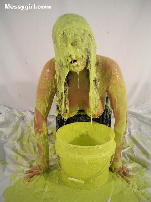 Liz gets artsy, as she is covered head to toe in gold paint. The transformation is breath taking as she is turned into a sexy living work of art. Then is defaced with a bucket of slime, but not to worry, it adds to the transformation into a living work of art, messygirl style.