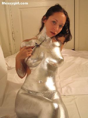 Lexi is painted silver and slimed head to toe