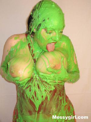 Total coverage for Lexi in gallons of slime wearing only her thong panties!