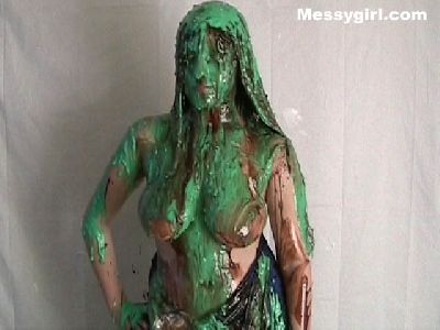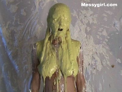 Nikki slops it up in pudding, slime and pies. She starts out in her sexy bikini, but soon goes nude for pie sitting and head dunking in a bucket of slime!