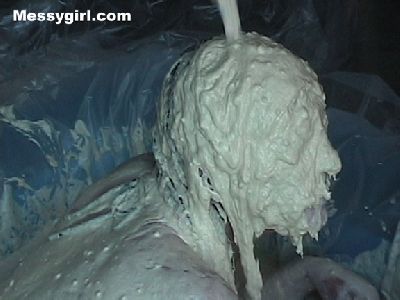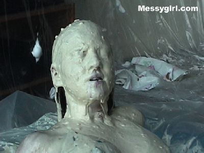 Sara take a bath in gooey, sticky plaster. She is totally covered from head to toe.