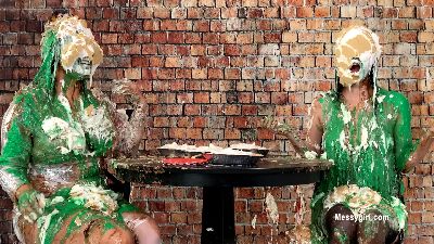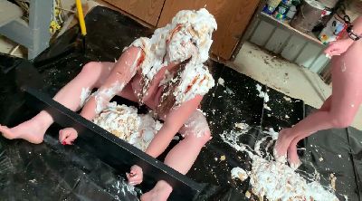 Zoey's older and curvy sister Brittany is initiated by Penelope. Brittany is covered in pies, slime and chocolate while in the wrist and ankle stocks.