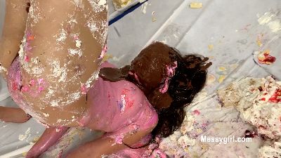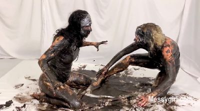 Zoey and Penelope go at it with some extreme black grease wrestling. Both girls are totally unrecognizable by the time they are done.