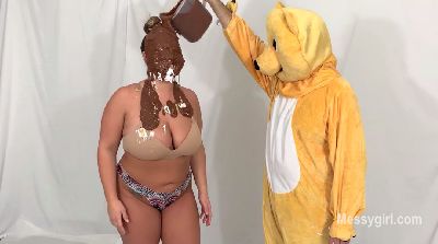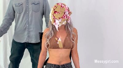 Our neighborhood cashier makes her Messygirl debut. You will love how Zoey takes a full on Messygirl treatment onslaught. She ends up topless and covered thick head to toe in pies, batter and cake.