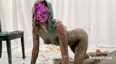 Fetish model Megan Jones does her first Messygirl shoot and Amy is on hand to administer the mess. Amy makes sure Megan is totally trashed with pies, batter and chocolate syrup.