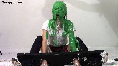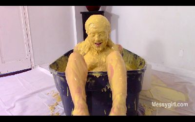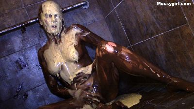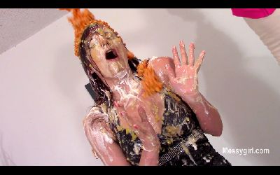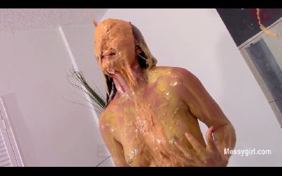 Cute WAM virgin Jessie pays us a visit. She is very nervous and has no idea what to expect. We ask her to tell us a bit about herself and during the interview she is pied. You will love her reaction as she experiences pies for the first time. Next is a batter pour over the head. She tries to keep her compouser as the mess keeps coming. She then takes off her sexy teddy and gets pied topless. She then pies herself and then gets a chocolate batter pour over the head. She is now a complete mess as she gets on all fours and pushes her face in a pie on the floor. She then pours more batter over her head and rubs it all over her now nude body. You get the added bonus of Jessie taking a shower as she is interviewed about her first Messygirl shoot.