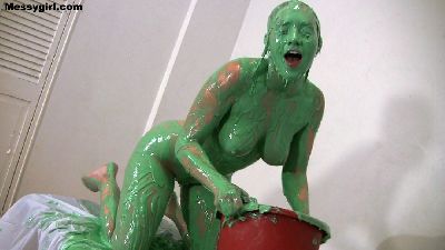 Amy is in a tight dress and heels as she gets ready to sit on a pie. Once her ass gets a nice creaming, she continues to slop herself up. She first covers her legs and heels in the cream and green slime. She then pours the slime over her head and rubs it all over herself. She takes off the dress, and rubs the mess all over her tits and pussy. Then she gets on all fours for pies to her face and ass. While still on the floor, she grabs her heels so that her face is lifted up for another pie to the face. She then brings herself to a few orgasms as she uses a vibrating toy on her messy pussy.