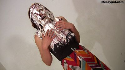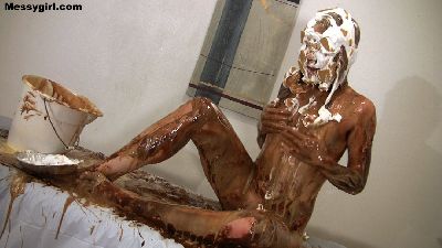 Christina goes all out as she slathers herself head to toe in pies, slime and chocolate.