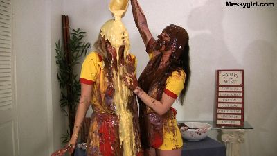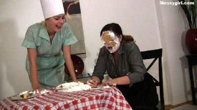 Vika and Penelope are best friends and co workers at a local restaurant. Penelope walks in on Vika goofing off from making cupcakes. Penelope tells her what she needs to do and flicks batter in her face to make a point. This then sets off a messy tit for tat with the ingredients.