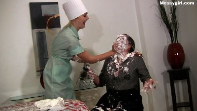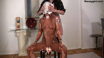 Penelope give Emma her Messygirl initiation. Emma is told to get on her knees as she is destroyed with pies, batter and custard. She also gets her ass spanked with a cat o'nine tails whip.