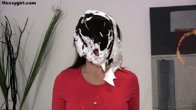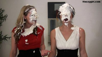If you enjoy watching the ladies pied on the Brazilian TV show Chega Mais, then you will enjoy our take on it. We have a pretty and nervous Tilly on the stool waiting to be destroyed with thick sloppy colorful pies. Penelope is the lucky one who gets to administer the pies, and boy, does she ever. Tilly is destroyed after it is all said and done.