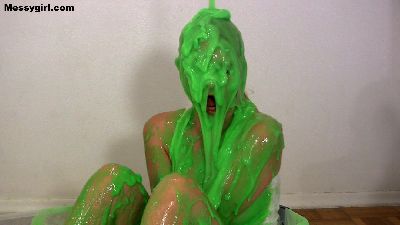 Vika shows her sensual side, as she is covered in green methylcellulose slime. She is at first a bit nervous, but as soon as the slippery sensation hits her, she becomes aroused. She rubs the slippery stuff all over her body, and is so turned on, that she even masturbates for the first time on camera.