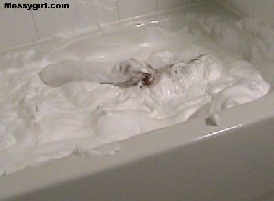 The original Messygirl takes a relaxing cream bath.