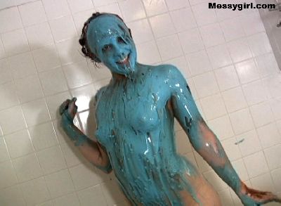 Debbie's relaxing bath gets very messy. Great coverage with pies, chocolate batter and slime.