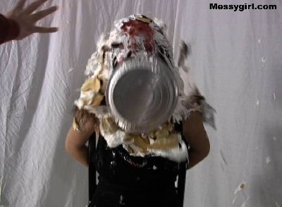 Video of Ashley pied and slimed while tied to a chair