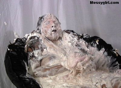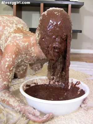 Sexy Angela takes on gallons of batter slime as she sits nude in the bath tub. Her pretty face is engulfed in the thick mess.