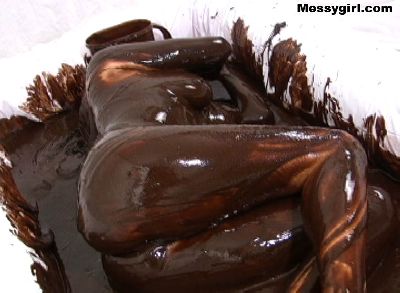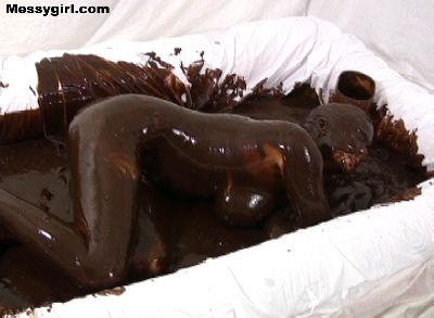 Mai rolls around in a pool full of dark chocolate. She goes from a sexy nightie to nude.