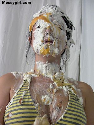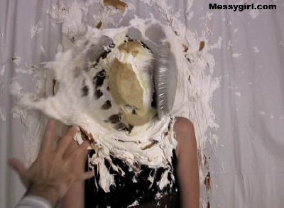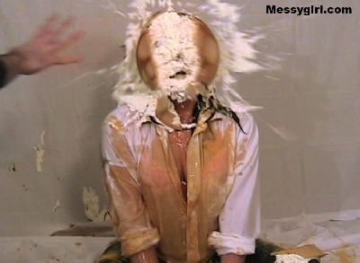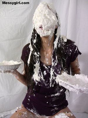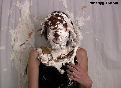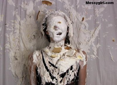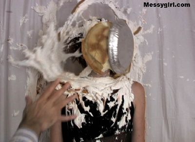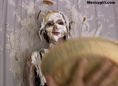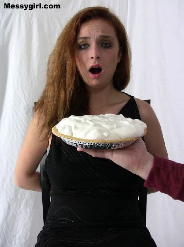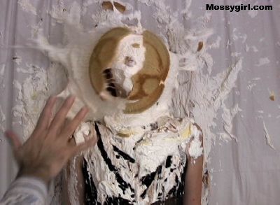 Messygirl virgin Laurel gets 14 pies hard to the face and takes them like a trooper. She then rubs the messy all over herself.