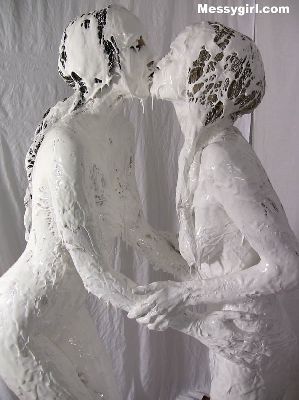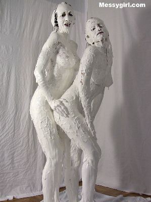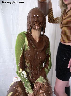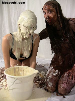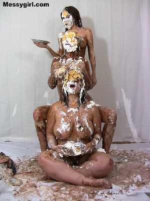 Liz and Danielle team up for some messy play time. Total messy coverage for both girls clothed to nude.