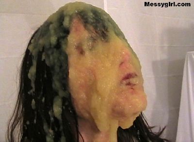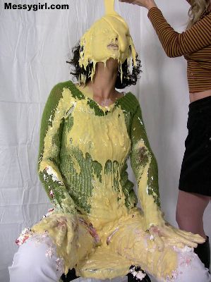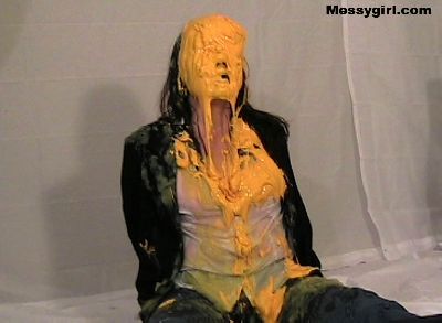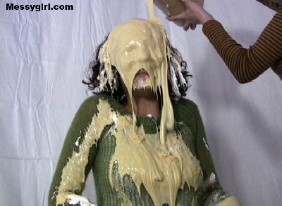 If you are a fan of messy food humiliation, then you will love this video! Poor Linda is covered in applesauce, syrup, cheese sauce, beans, raw eggs, pudding, pies and melted ice cream. She even dunks her head in a bucket of green slop!