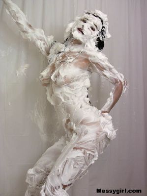 Glam model Nicole Moser is taking a relaxing shower, but then is attacked with pies. She then rubs the pie slop all over her body.