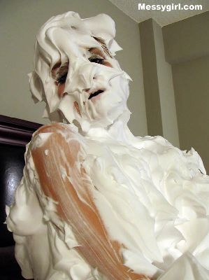 Sexy Liz is engulfed in a bed of shaving cream. She goes from a teddy to nude!