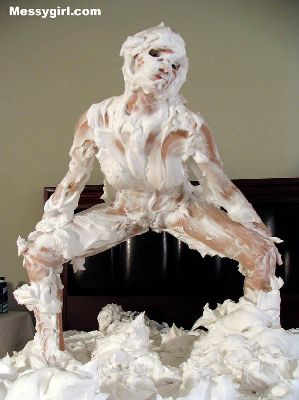 Busty Wednesday's relaxing bath turns very sloppy as she is creamed with pies and covered in slime, chocolate syrup and ice cream!
