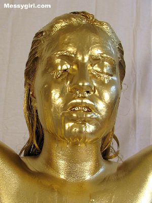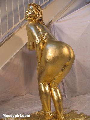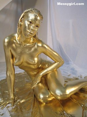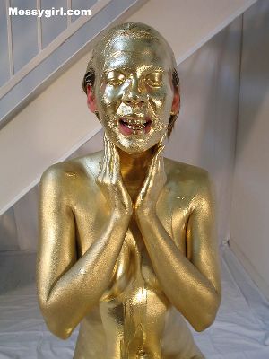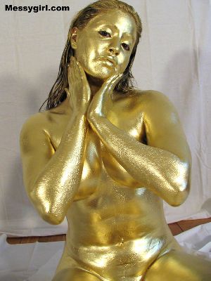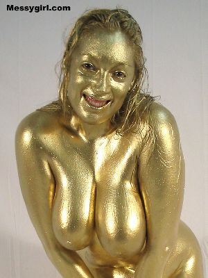 Cute and sexy Allison is covered head to toe in gold paint! A rare chance to see her nude!