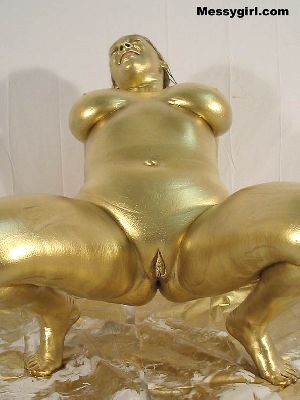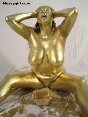 Sexy Vicky is covered head to toe in gold paint. She is nude from start to finish!