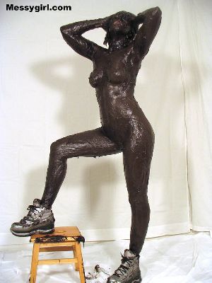 Sexy Amber paints herself silver and poses as a mud flap girl. She then has mud thrown at her to finish the look!