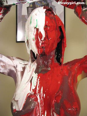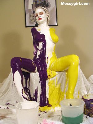 Liz becomes a human canvas! She uses many colors to make herself into a living work of art!
