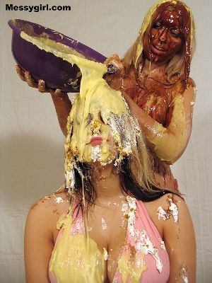Nikki gives her friend Ariel the messygirl treatment. Ariel takes to the mess like a pro! Both girls end up nude!