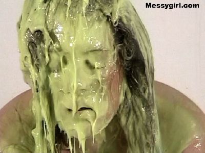 Sexy Katies goes head dunking in a 5 gallon bucket of green slime!